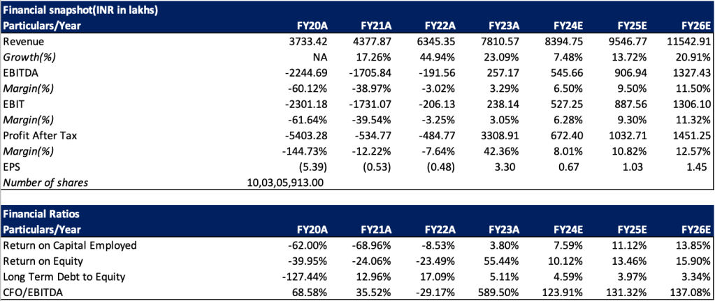 Tracxn’s strategy has been to grow both users under existing accounts and acquire new customer accounts. Growing users within a customer account has limited scope and is dependent on fund size. Also, Tracxn’s coverage of international markets also will be influential in maintaining growth rates. Bulk of the customers are using the platform for the first time. International realisations are 1.5x of India. Tracxn’s management expects existing customers to grow at low double digits while main growth is expected to come from new customers. It will pay to watch out how Tracxn is able to grow its international revenue due to the sheer size of overseas markets and higher realisations. International revenue makes up 70% of revenue as of FY23. Company does not have any marketing cost as it relies on lead generation by distributing its own data organically through news articles and other sources. Management has showed willingness to explore inorganic expansion initiatives and is expecting costs to remain under control with increase in revenue. Company is also doing account tightening right now which is leading to reduction in customer accounts. Currently, IB fee is at 10 year low, global tech funding is at 5 year low and unicorn creation is at a 7 year low, suggesting the cycle maybe close to bottoming and growth should eventually pickup. Management is forecasting revenue to grow faster and eventually touch 30% growth mark and costs to grow under 10% mark for next 2 years, suggesting margins have ample scope for expansion.